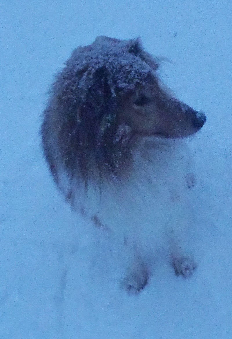 Täällä on ollu vuorotellen ihan sairaan kylmä (-33,6 taitaa olla paras lukema mitä oon nähny) ja vuorotellen satanu lunta ku from esteris arse:D No tietääpä ainaki että on talvi. Miki ja Enda tykkää peuhata lumessa, eivätkä edelleenkään arvosta hirveesti pakkasta. Enkä totta puhuen miekään, en ainakaan noin kovaa pakkasta... Tänään kävin ostamassa toppatakin (vain 1/3 musta, minun vaatteiston väripaletti monipuolistui violetilla) ja hain myös strepsilssejä...